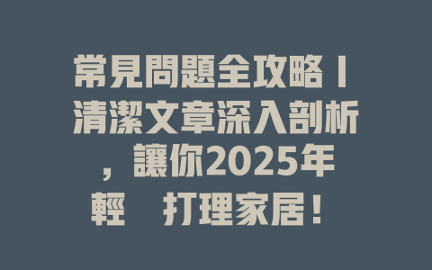 常見問題全攻略|清潔文章深入剖析,讓你2025年輕鬆打理家居!