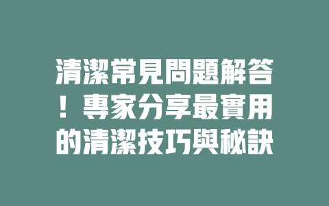 清潔常見問題解答!專家分享最實用的清潔技巧與秘訣