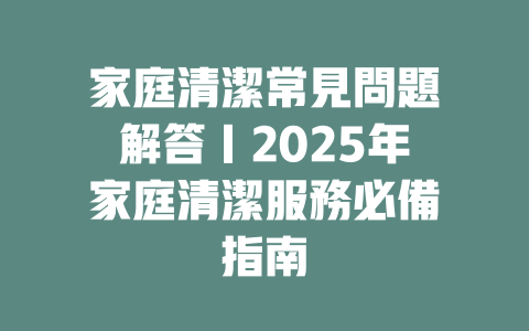 家庭清潔常見問題解答|2025年家庭清潔服務必備指南