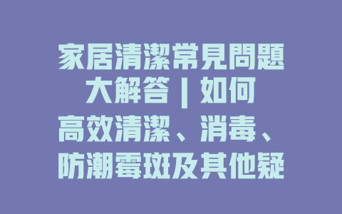 家居清潔常見問題大解答 | 如何高效清潔、消毒、防潮霉斑及其他疑難雜症一網打盡!