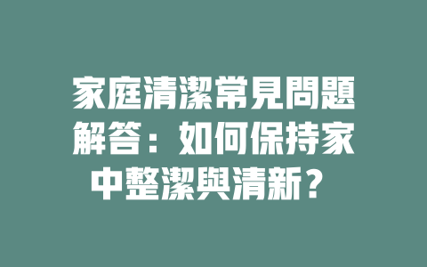 家庭清潔常見問題解答:如何保持家中整潔與清新?