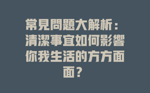 常見問題大解析:清潔事宜如何影響你我生活的方方面面?