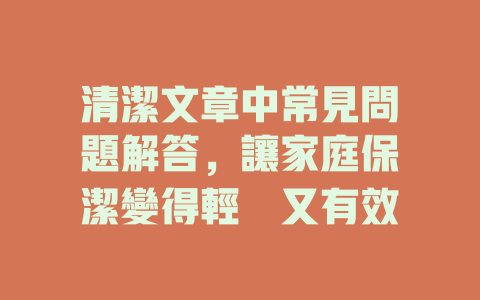 以上這些步驟和方法,不僅可以讓家裡保持乾淨,還能提升家庭成員的健康生活質量。原來,清潔其實並不難,只要養成良好的習慣,就能有效抵抗塵埃和污垢的侵擾。