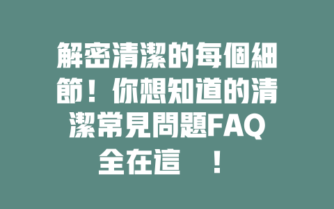 解密清潔的每個細節!你想知道的清潔常見問題FAQ全在這裡!