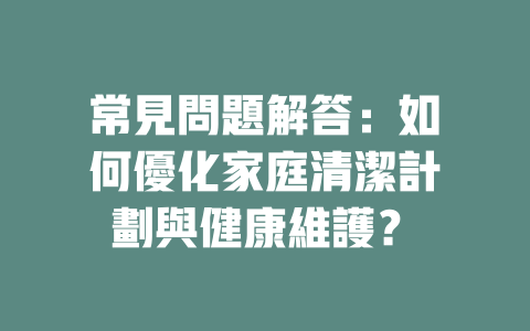 在現代生活中,維持環境的清潔已變得越來越重要。不論是在家中、工作場所或是公共空間,乾淨的環境不僅能影響到個人的健康,還能提升整體的生活品質。對於一個家庭來說,清潔是一個不能忽視的部分,通過定期的清掃護理,能有效預防各種疾病的發生。