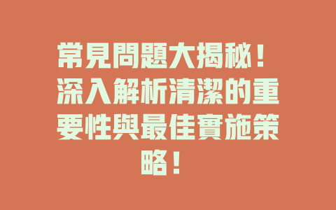 清潔不僅僅是讓環境看起來整潔,還涉及到健康、安全和效率。無論是在家中、辦公室還是商業場所,維持良好的清潔狀態,直接影響到我們的生活質量和工作效能。