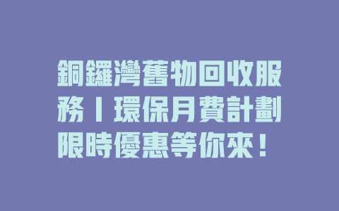 透過這些回饋,我們能夠持續提升我們的服務質量,讓每位參與者都能享受到便捷和滿意的回收體驗。在銅鑼灣,我們相信,一個個小行動能共同推動大環保。## 常見問題解答