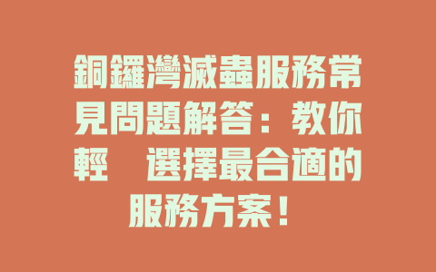 銅鑼灣滅蟲服務常見問題解答:教你輕鬆選擇最合適的服務方案!