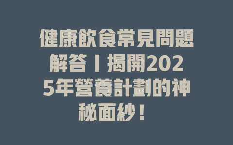 健康飲食常見問題解答|揭開2025年營養計劃的神秘面紗!