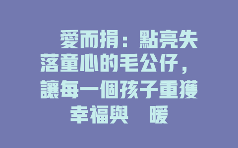 為愛而捐:點亮失落童心的毛公仔,讓每一個孩子重獲幸福與溫暖