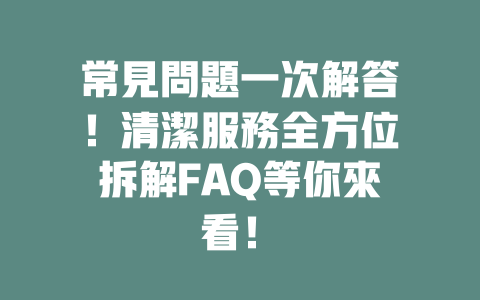 我們還將分享一些用戶經驗和反饋,讓您能夠更直觀地了解清潔服務的實際效果。從選擇合適的清潔公司,到預約的注意事項,一系列常見問題的解答都將在這篇文章中一一展現。讓我們來看看,無論您是準備第一次嘗試清潔服務,還是想進一步了解其背後的專業流程,這篇FAQ都將是您最理想的參考資料!