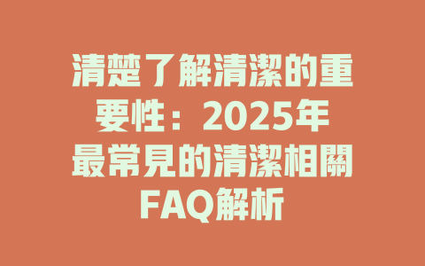 本文將深入探討清潔環境對我們身心健康的影響,解釋如何通過簡單易行的清潔技巧來提高空氣質量、降低疾病風險以及增強心理健康。我們會提供一些專家的建議與實用的小竅門,讓你在繁忙的生活中,依然能輕鬆保持家中的整潔。我們的目標是讓讀者不僅了解到清潔的重要性,還能掌握相應的清潔技巧與習慣,從而提升居住環境的品質。準備好迎接一個更加乾淨、健康的生活空間了嗎?讓我們一起揭開這些清潔知識的面紗,展開一段清新的旅程吧!