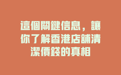 以上就是影響香港店舖清潔價錢的一些核心因素,掌握這些信息不僅能讓商家更好地控制成本,還能提高服務質量。