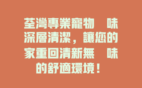 以專業的清潔服務來解決寵物造成的異味問題,可以大大提升生活品質,享受更健康的居家環境。只有找到合適的方法,才能讓我們和寵物一起快樂地生活在一個清新宜人的空間中。