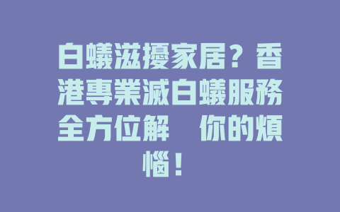 白蟻,這個看似不起眼的小昆蟲,卻能在不知不覺中侵蝕你的家居。它們以木材為食,對於家具、地板及結構性材料都可能造成實質損害。尤其是香港這種潮濕的氣候,白蟻更是滋生的溫床,讓人不得不提高警惕。許多家庭因為白蟻而遭受損失,修復費用高昂, 及早發現與處理至關重要。