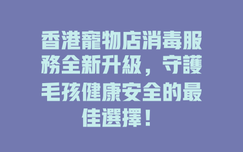 香港寵物店消毒服務全新升級,守護毛孩健康安全的最佳選擇!