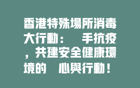 隨著疫情局勢的變化,香港的消毒行動頻繁展開,特別是針對特殊場所的徹底清潔。這次消毒大行動,不僅是對環境衛生的重視,也顯示出政府對民眾健康的高度負責。那麼,這些特殊場所有哪些呢?給大家介紹幾個關鍵地方。