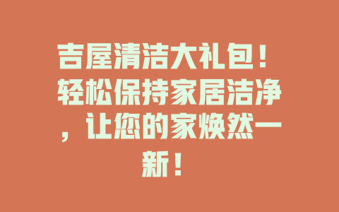 吉屋清洁大礼包!轻松保持家居洁净,让您的家焕然一新!