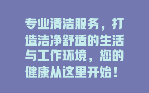 专业清洁服务,打造洁净舒适的生活与工作环境,您的健康从这里开始!