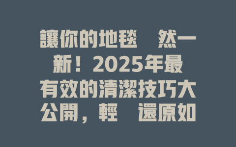 讓你的地毯煥然一新!2025年最有效的清潔技巧大公開,輕鬆還原如新色澤與舒適感!