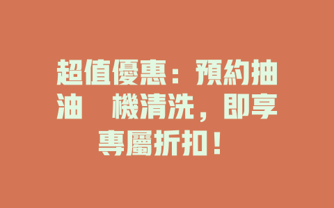 超值優惠:預約抽油煙機清洗,即享專屬折扣!