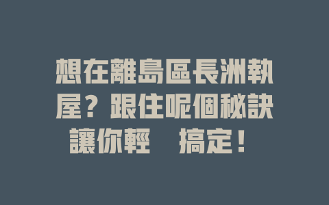 想在離島區長洲執屋?跟住呢個秘訣讓你輕鬆搞定!