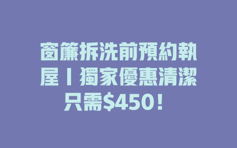 如果您覺得自己清潔窗簾過於繁瑣,可以選擇專業的清潔服務。我們提供的獨家優惠,只需$450,幫助您徹底清理窗簾,還您一個健康清新的居住環境。