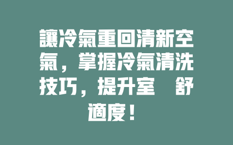 讓冷氣重回清新空氣,掌握冷氣清洗技巧,提升室內舒適度!