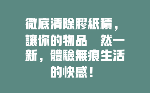 膠紙積是我們在日常生活中經常會遇到的問題,不管是在包裝上,還是貼紙的殘留,都會讓物品變得不美觀。不過,無論膠紙積的來源是什麼,我們都能找到有效的方法來清除它們,讓生活空間恢復整潔。