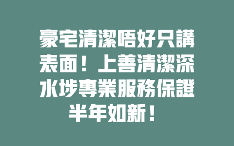 豪宅清潔唔好只講表面!上善清潔深水埗專業服務保證半年如新!