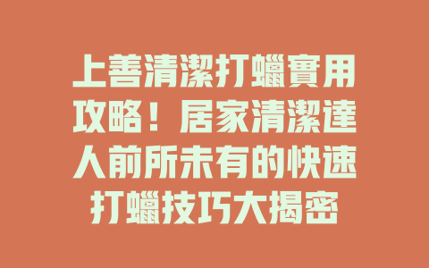 這些細節能幫助你輕鬆上手,讓居家清潔變得簡單而有效。