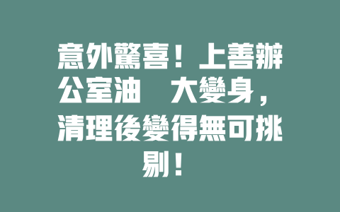 油牆誰都不想要,但它卻總是悄然無息地出現在我們的辦公室裡,特別是那些經常有咖啡、飲料和食物的地方。這種情況下,清理油牆成為了必須進行的工作。如何有效地清除這些油垢呢?