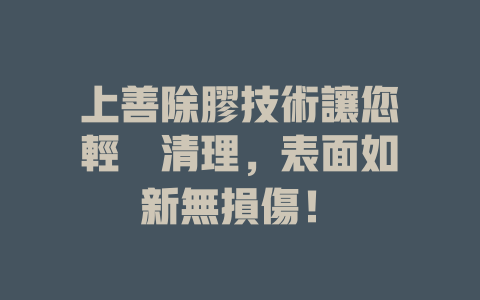 不管是居家清理,還是辦公場合的急救需求,上善除膠技術提供了高效、安全的解決方案。使用這項技術,清理變得輕鬆愉快,讓每一個角落都煥然一新。