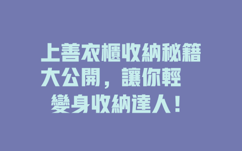 上善衣櫃收納秘籍大公開,讓你輕鬆變身收納達人!