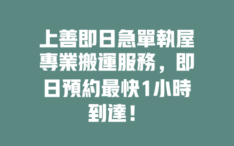 透過上善即日急單執屋服務預約後,我們的搬運團隊最快會在1小時內抵達您的指定位置,確保迅速高效地完成搬家任務。