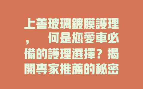 選擇上善玻璃鍍膜護理,不僅能提升您愛車的外觀及性能,也能節省日常護理的時間與成本,是對車輛投資不可或缺的一部分。