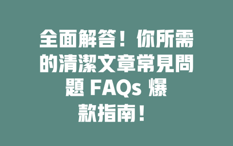 全面解答!你所需的清潔文章常見問題 FAQs 爆款指南!