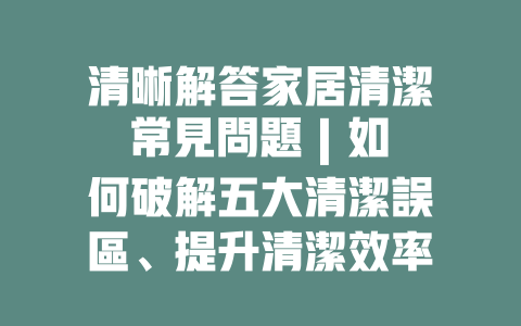 清晰解答家居清潔常見問題 | 如何破解五大清潔誤區、提升清潔效率一站式解決!
