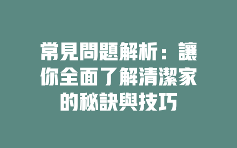 通过这些方法与技巧,你可以轻松应对家庭的清洁工作,让家居环境始终保持舒适与整洁。