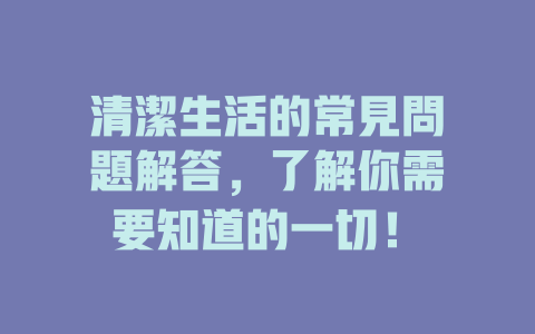 清潔生活的常見問題解答,了解你需要知道的一切!
