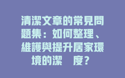 透過這些簡單的小技巧和時間規劃,你的家居清潔工作將變得更加高效,讓生活環境時時保持整潔與舒適。