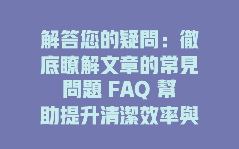 自動引用通知: 常見問題解答:清潔的秘訣、技巧與健康益處全攻略 - SHANE CLEANING SERVICE COMPANY LIMITED
