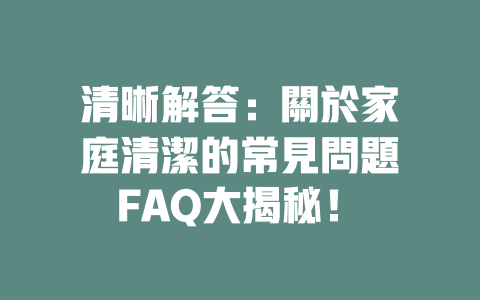 自動引用通知: 完整解答您的疑惑:2025年關於清潔的常見問題FAQ總整理 - SHANE CLEANING SERVICE COMPANY LIMITED