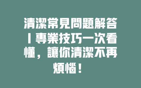清潔不僅僅是保持環境整潔,還是維護健康的一個關鍵因素。特別是在當今這個流行病頻繁的時代,良好的清潔習慣能夠有效降低病菌的傳播。接下來,我們來談談清潔的基本知識、必要性以及一些實用的小技巧。