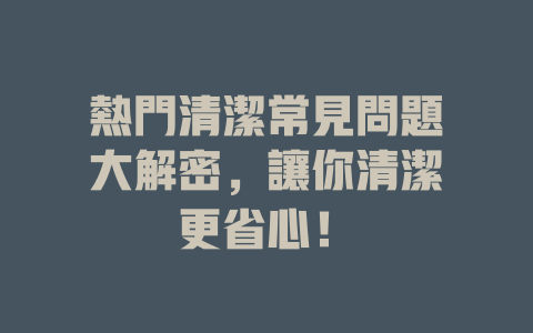 掌握了這些清潔的小知識,讓我們的生活環境更整潔清新,每個人都能享受到一個舒適健康的居住空間。