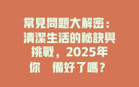 在現代社會,清潔不僅僅是一種生活習慣,更是一種文化。無論是在家庭還是公共場所,保持整潔都是每個人應有的責任。清潔的環境可以促進健康,增強幸福感,還可以提升工作效率。那麼,為什麼清潔如此重要呢?